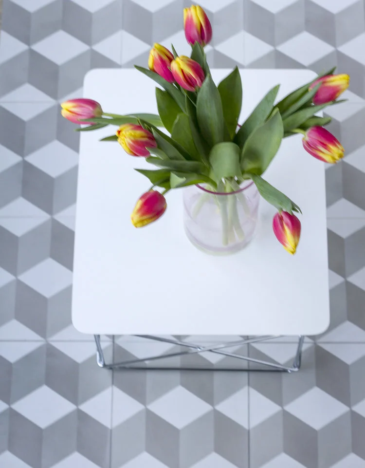 Kombiner med svarte fliser og sett sammen i klassisk sjakkmønster.